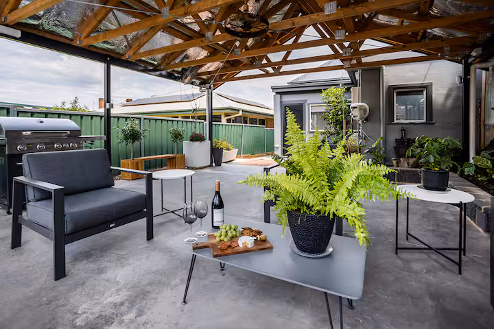 All rooms have a Reverse cycle split system, comfy queen bed, built-ins, and 42′ smart TV. The kitchen has everything you would want plus more. The undercover pergola area is picturesque with BBQ, outdoor lounges, fans, and fire pit. There is back lane access and a double lock up garage with automatic roller doors to make parking a breeze.
